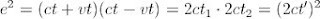 Ista ova jednakost odgovara i Lorentzovim dužinama. Jedino što treba zamijeniti Einsteinovu veličinu 2ct' Lorentzovom veličinom x'+vt'. Naravno, Lorentzovo t' nije isto što i Einsteinovo t'.